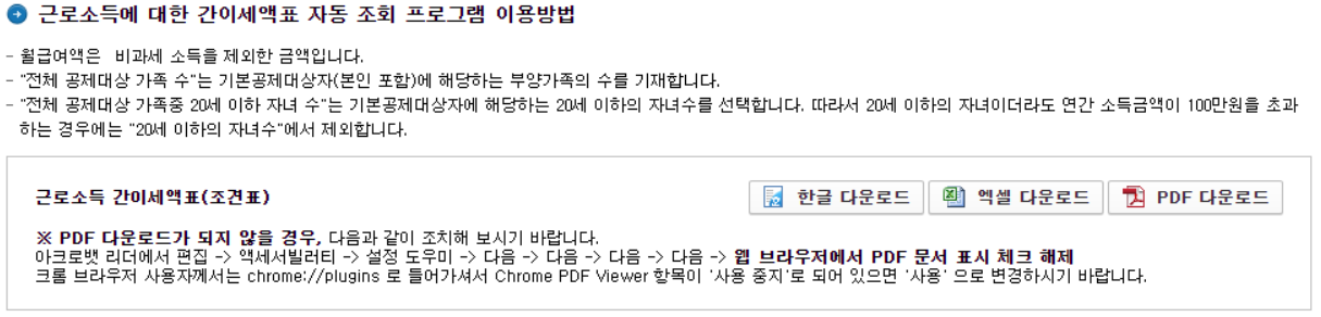 국세청 갑근세 자동계산