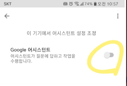 6. google 어시스턴트 항목에서 파란 걸로 되어 있는 걸 회색으로 꺼줍니다.