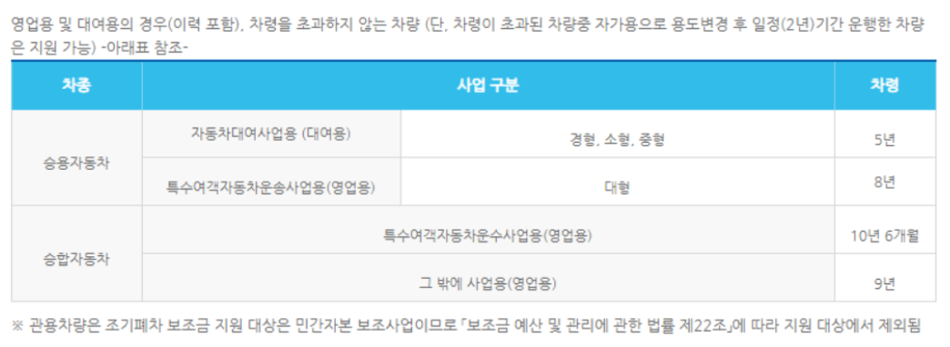 노후 경유차 폐차 지원금 대상 자동차
