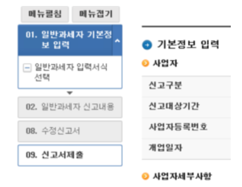 입력서식을 선택하는데, 기존 입력된 내용에 가산세만 추가하면 되는 경우는 가산세가 추가됐는지 여부만 확인하고 넘어갑니다.