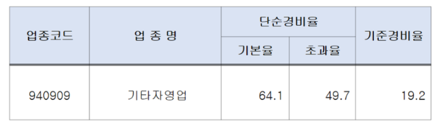 업종코드별로 경비율이 다른데요. 940909는 다음처럼 적용하면 됩니다.