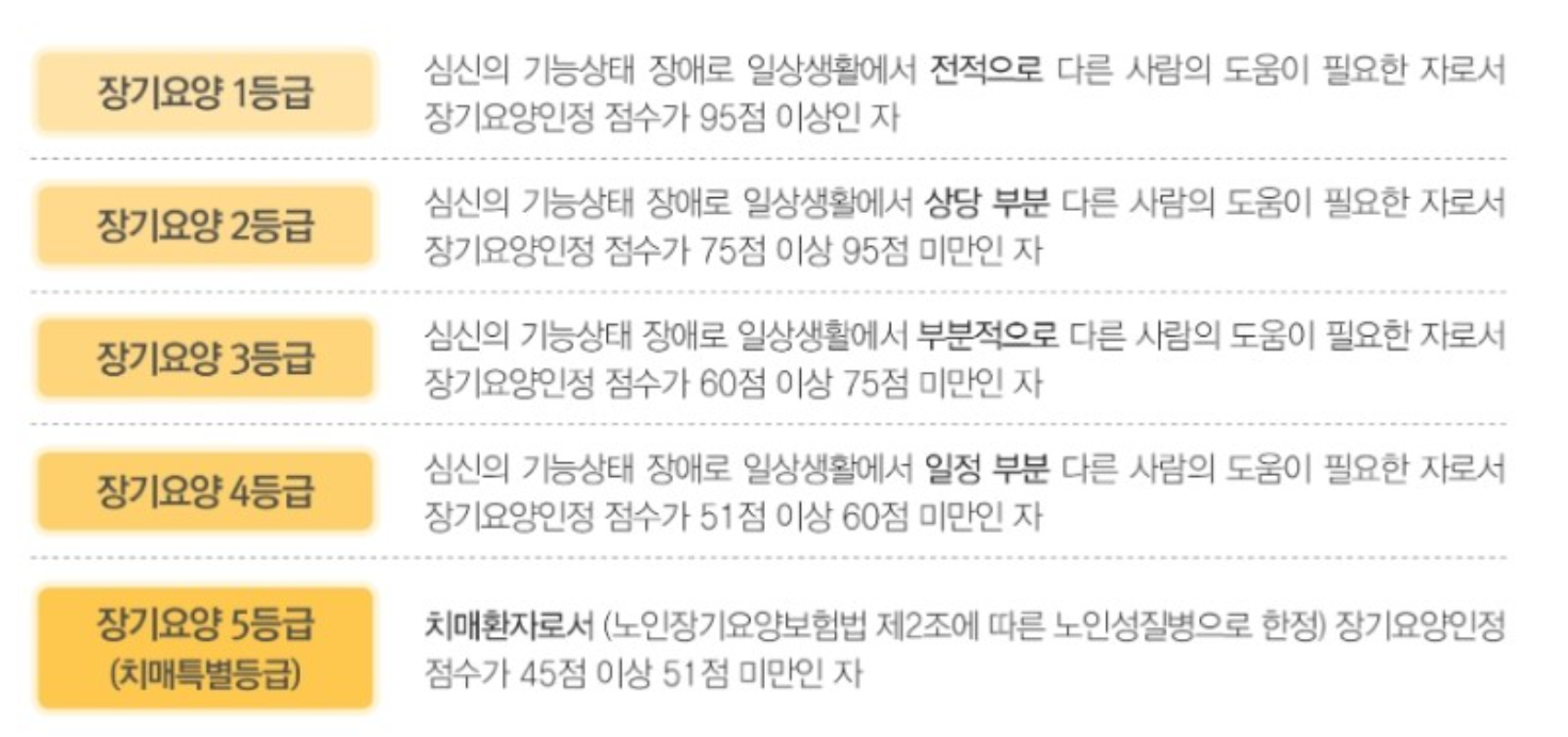 오늘은 장기요양 등급별 혜택 관련해 정리해보겠습니다.