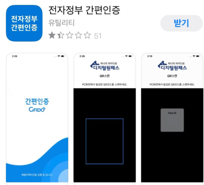 전자정부 간편인증 앱을 설치합니다. 해당 qc코드를 스캔합니다.