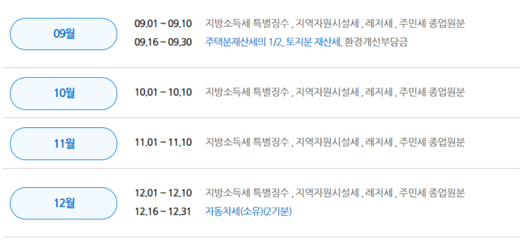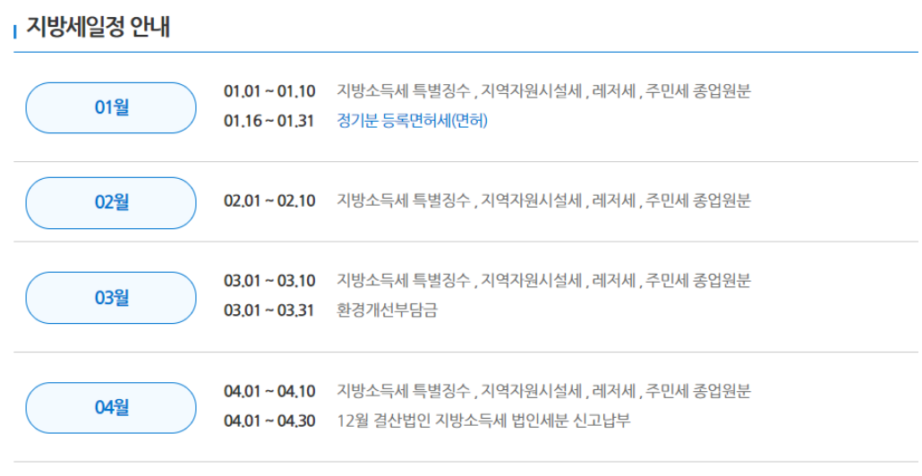 지방세 납부기간은 아래를 참조해주시기 바랍니다.
