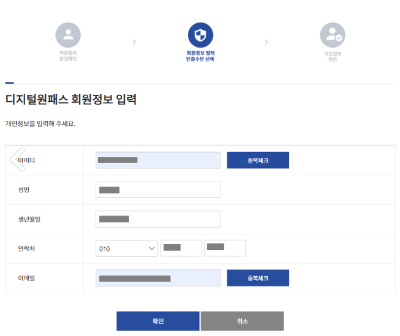 www.onepass.go.kr/ 접속 후 회원정보를 입력합니다.