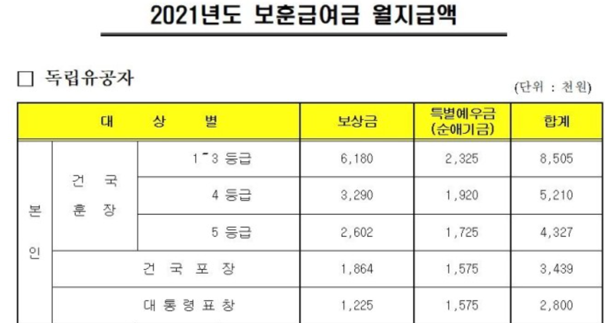 오늘은 2021년 보훈보상금 관련해서 포스팅해보겠습니다.