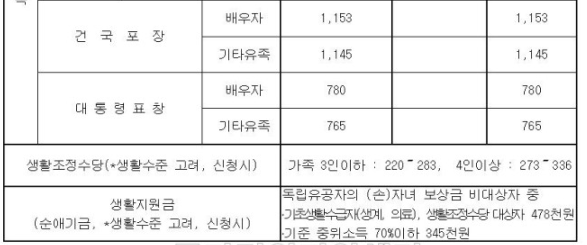 먼저, 2021년에는 독립유공자, 국가유공자와 그 유가족 등을 위해 보상금 및 수당이 인상되었습니다. 총 3% 정도가 되었습니다.
