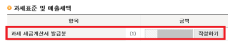 여기서 매출 세금계산서 1건 누락인 경우라면, 과세 세금계산서 발급분에 '작성하기'를 눌러 수정해줍니다. 이에 따라 매출금액도 변경되니 과세표준명세도 수정해줍니다.