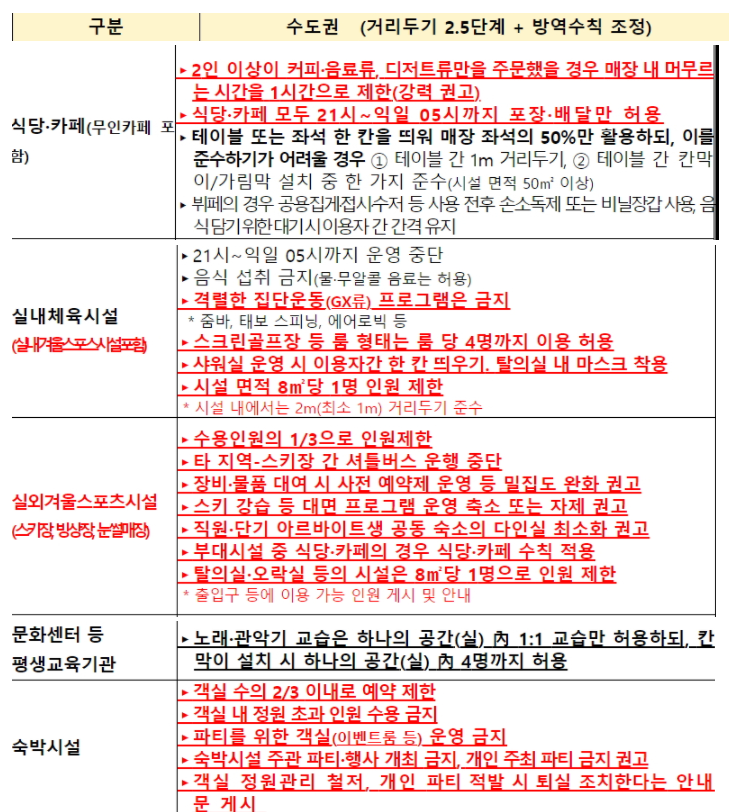 특히 식당 등 다중이용시설에 5명 이상 예약 및 동반입장은 금지됩니다.
