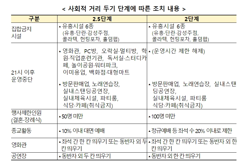 현재는 수도권 2.5단계 그리고 비수도권 2단계인 상태입니다. (아래 사진 참조)