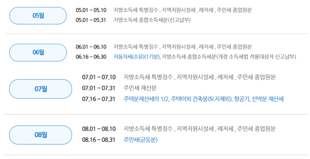 지방세 납부기간은 아래를 참조해주시기 바랍니다.