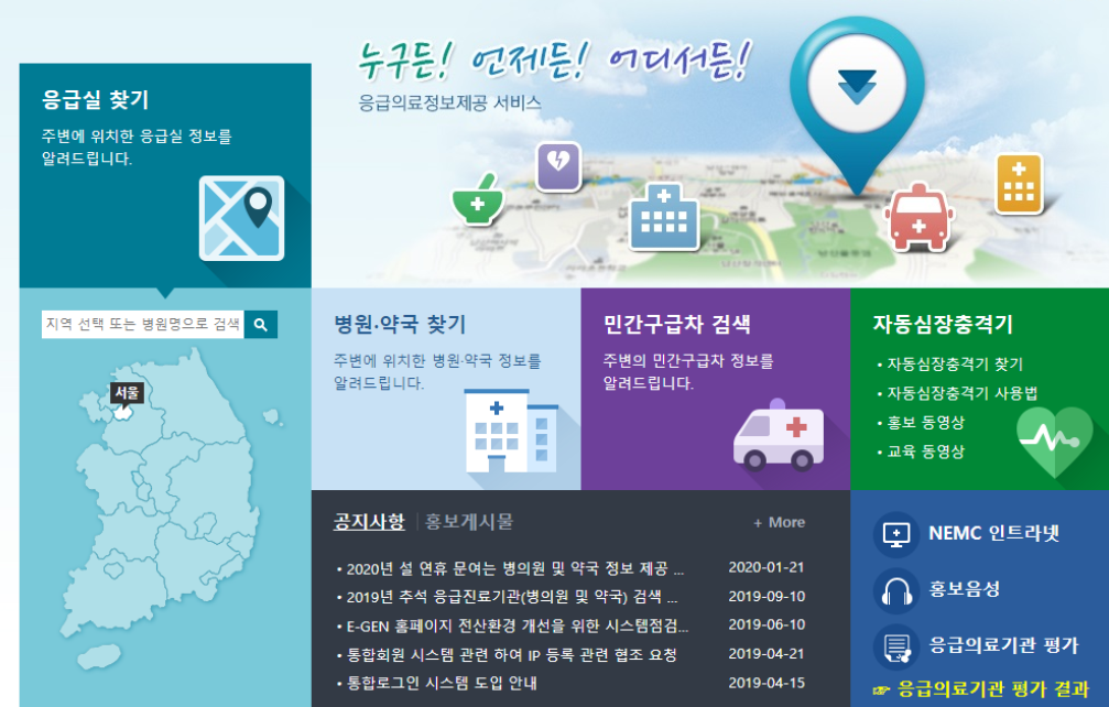이 때를 대비해 응급의료포털 또는 공휴일 문여는 병원을 미리 알아두면 큰 도움이 되겠습니다. 바로 아래 사이트입니다.